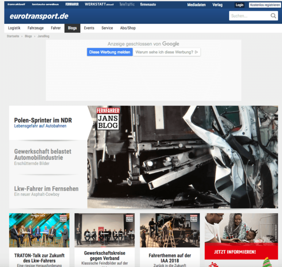 10. Oktober 2017 - Jan Bergrath ist Experte für die Themen Transport und Logistik. Mit viel Leidenschaft für seinen Themenschwerpunkt führt der Journalist und Fotograf seit Sommer 2016 einen eigenen Blog auf eurotransport.de. Darin widmet er sich aktuellen Ereignissen und Entwicklungen aus der Transportbranche wie Lkw-Kontrollen, Fahrerausbildung, Sozialdumping oder Unfallstatistiken. Schwerpunkt der Berichte sind die Arbeitsbedingungen der Lkw-Fahrer sowie die politischen und sozialen Rahmenbedingen der nationalen und internationalen Logistik. Viel Spaß beim Lesen!