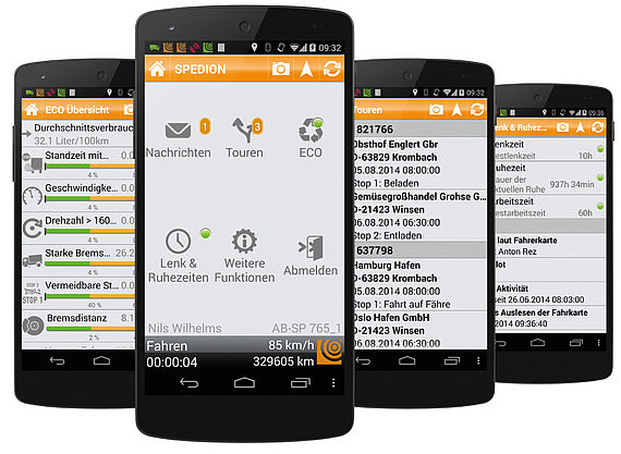 Zu jedem Fahrer oder Fahrzeug liefert das System alle relevanten Informationen wie Fahrer- und Fahrzeugnummer, Status der Lenk- und Ruhezeiten, letzte Tätigkeit oder verbleibende Fahrzeit. Die Zentrale hat jederzeit den Überblick über den gesamten Fuhrpark. Anwender haben zusätzlich die Möglichkeit, Nachrichten und Anhänge wie Fotos übermitteln.
